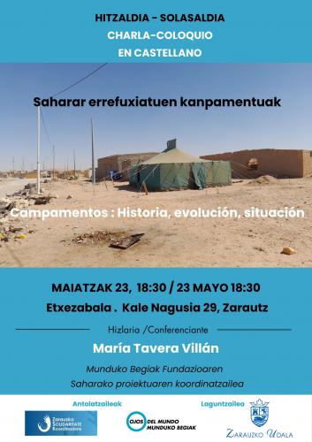Maria Taverak Tindoufeko (Aljeria) saharar errefuxiatuen kanpamentuen buruzko "Saharako kanpamentuak. Historia, bilakaera eta egungo egoera" hitzaldi-solasaldia eskainiko du.