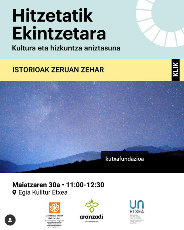 Jatorkin Al-Nahda elkarteak, "Hitzetatik ekintzetara" egitarauaren barruan, "Istorioak zeruan zehar" jardunaldia antolatu du.