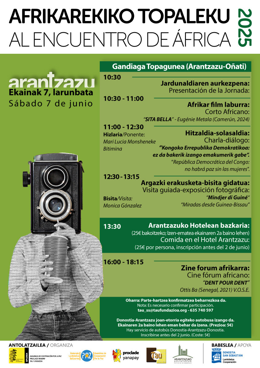 Gipuzkoako Afrika Behar Beharrezkoak (ACPP, Proclade Yanapay eta TAU Fundazioa) eta Arantzazuko Adiskideak elkarteak, "Arantzazu Afrikarekiko topaleku" jardunaldiaren edizio berria antolatzen dute.