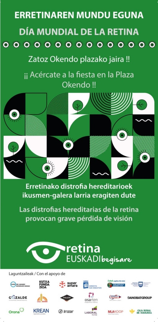 Erretinaren Nazioarteko Eguna (9/29) eta Ikusmenaren Munduko Eguna (10/9) direla eta, Retina Euskadi Begisarek sentsibilizazio eta dibulgazio ekitaldi bat antolatu du Okendo plazan (Victoria Eugenia Antzokiaren eta Maria Cristina Hotelaren artean, Donostia)