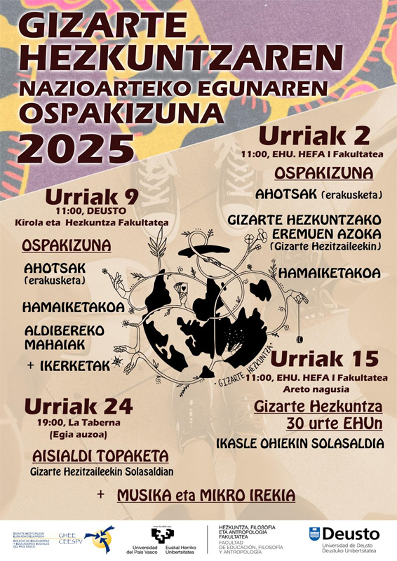Ospa dezagun Gizarte Hezkuntzaren Nazioarteko Eguna Gipuzkoan! - Antolatzaileak: UPV/EHU, Deustuko Unibertsitatea eta CEESPV.