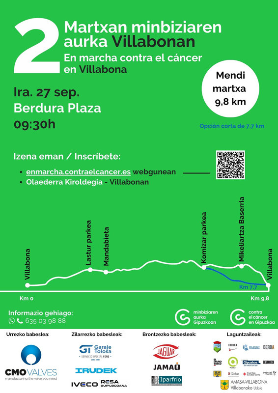 Minbiziaren Aurka Gipuzkoan elkarteak, Aizkardi Mendizale Elkartearen laguntzarekin, Villabonako Martxan Minbiziaren Aurka mendi ibilaldiaren bigarren edizioa antolatu du.
