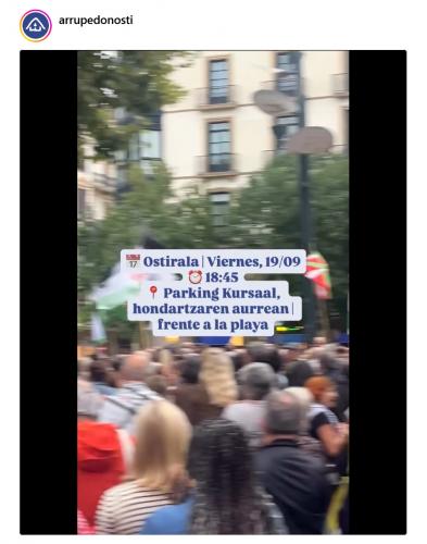 Bihar ostirala, 19/09, arrupipol osoa gonbidatzen zaituztegu Palestinan Giza Eskubideen urraketen aurka Donostian egingo den manifestaldira #Zinemaldia-ren alfonbra gorrian