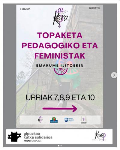 Topaketa Pedagogikoak eta Feministak Emakume Ijitoekin - Urriaren 7tik 10era, Kera Elkarteak gogoeta, partaidetza eta aktibismo gune honen 5. edizioa ospatuko du Irunen eta Donostian.