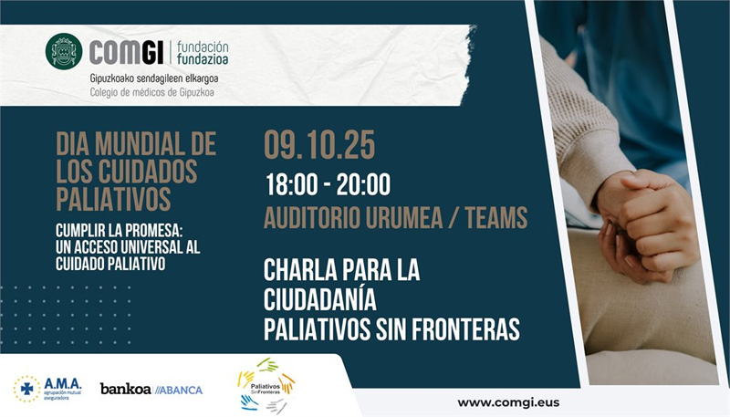 Zainketa Aringarrien Munduko Eguna dela eta, Paliativos Sin Fronteras eta COMGI Fundazioak Promesa bete: zainketa aringarrirako sarbide unibertsala hitzaldia antolatu dute urriaren 9an, 18:00etan.