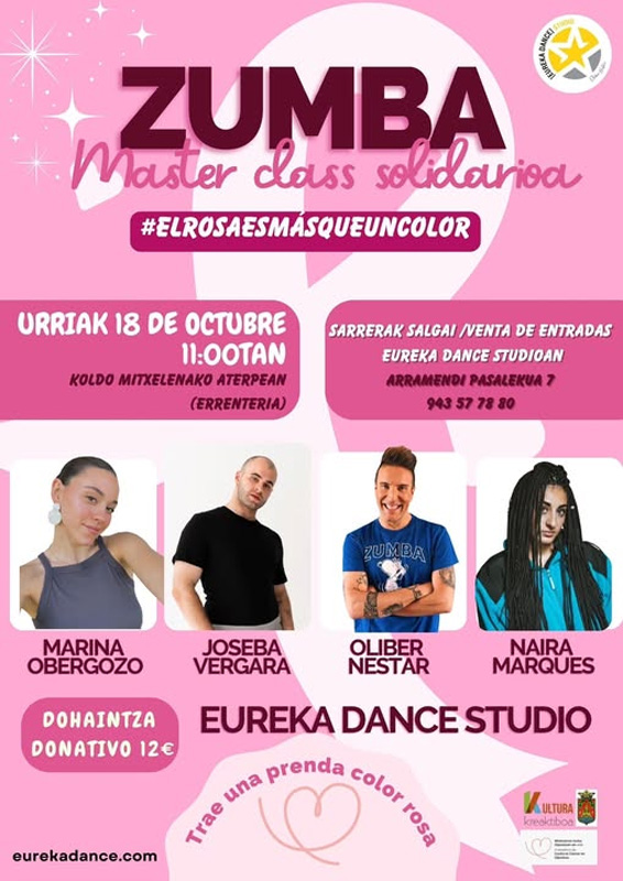 Eureka Dance-k Zumba master class solidario bat antolatu du urriaren 18rako minbiziaren inguruan sentsibilizatzeko eta ikerketa bultzatzeko