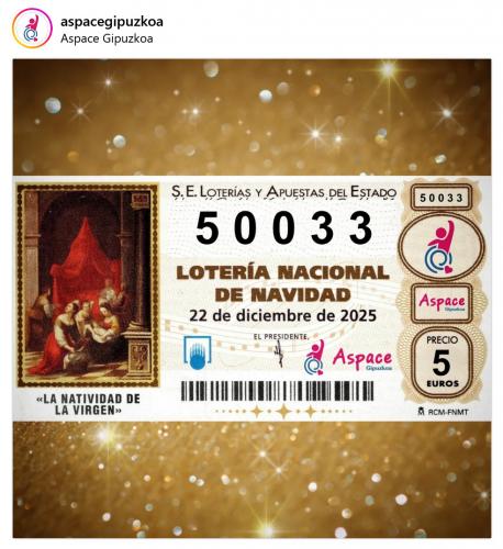 Ohitura den bezala, Aspace Gipuzkoak gabonetako loteriako partizipazioak atera ditu. Aurten 50033 zenbakira jolastuko dugu.