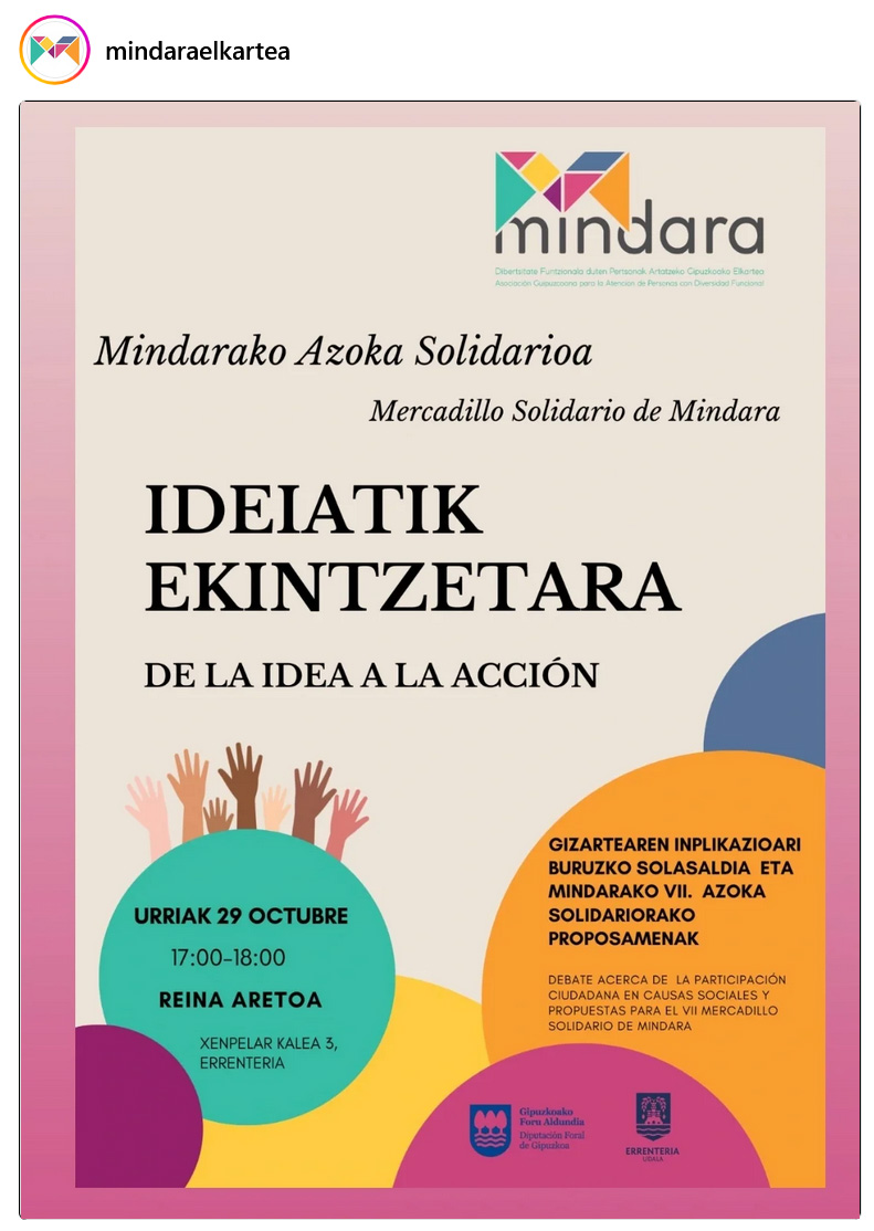 Mindara Elkarteak "Ideietatik Ekintzetara" solasaldi saioa antolatu du.