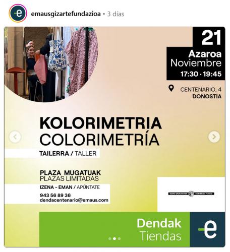 En mes de noviembre, de la mano de Emaús Fundación Social la asesora de imagen Maialen Uranga para impartir los Talleres de Colorimetría.