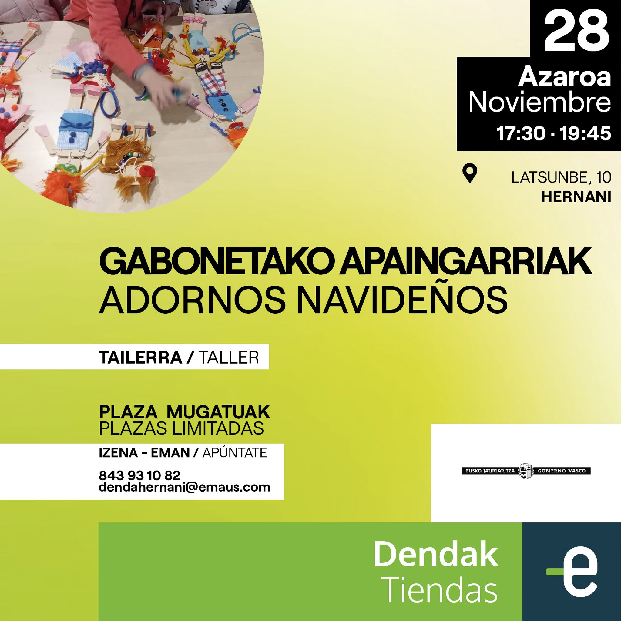Gabonetako apaingarriak etxean egiteko asmotan? 6-10 urte bitarteko haurrentzako sormen tailer bereziak antolatu ditugu Hernaniko eta Errenteriako Emaus Gizarte Fundazioko dendetan.