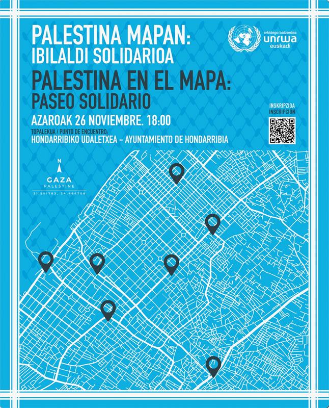 Bihar, azaroak 26, 18:00etan, UNRWA Euskadik bultzatutako eta Udalak babestutako Paseo Solidarioa izango da, Palestina mapan egitasmoaren barruan.