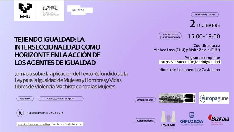 Jardunaldia Donostian - "Berdintasuna ehuntzen: intersekzionalitatea berdintasun-agenteen jardueraren xede gisa".