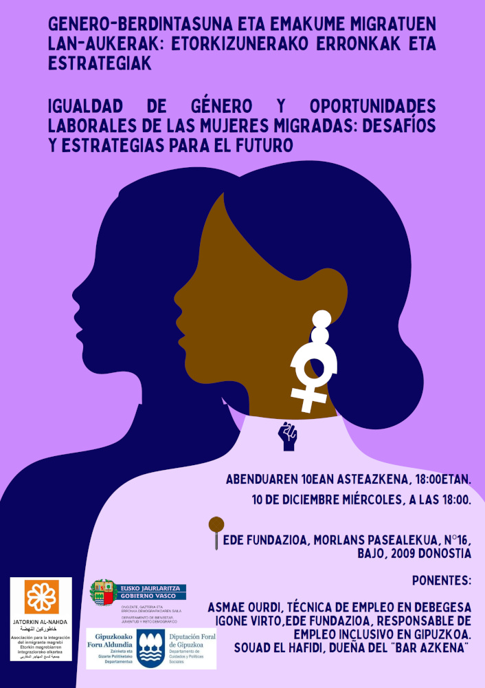 Jatorkin Al-Nahda elkarteak "Genero-Berdintasuna Eta Emakume Migratuen Lan-Aukerak: Etorkizunerako Erronkak Eta Estrategiak" jardunaldia antolatu du.
