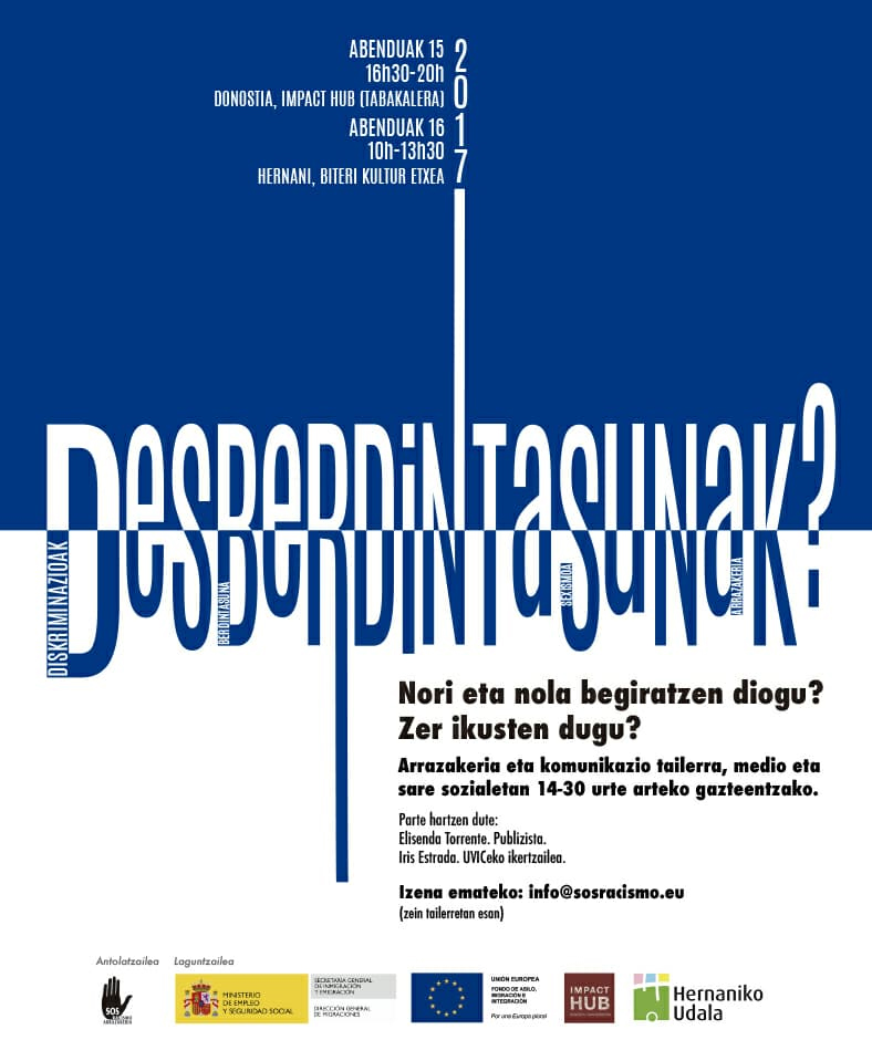 Tailerra: Nori eta nola begiratzen diogu? Zer ikusten dugu? - 14-30 urte artean badituzu izena eman info@sosracismo.eu Izen-abizenak eta adina eta zein tailerretara zatozen esan