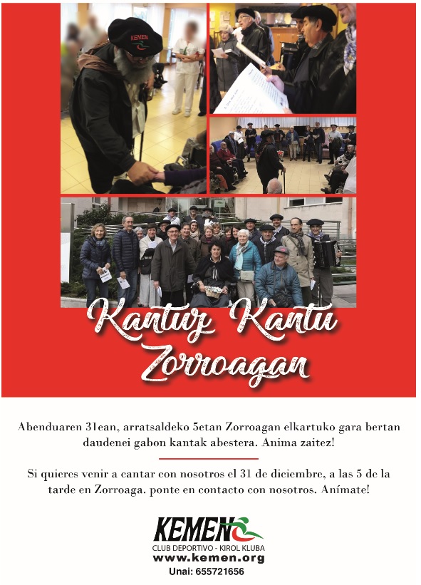 Como de costumbre por estas fechas, el próximo 31 de diciembre a las 17 horas, nos reuniremos en Zorroaga junto con nuestro Olentzero y el coro de Ikasbide para despedir el año cantando villancicos.