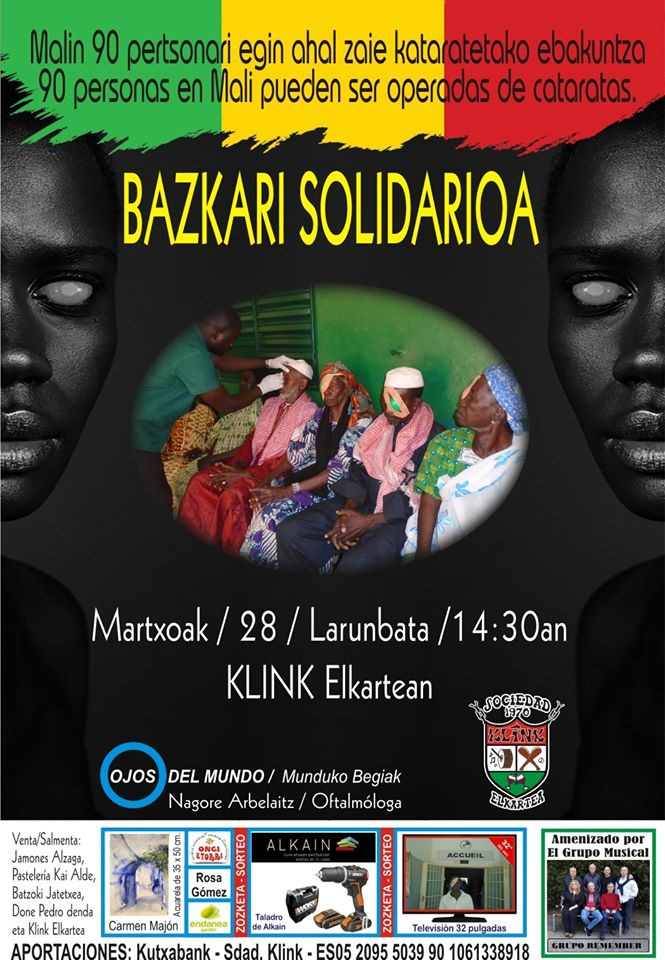 Klink Elkartea de Hondarribia organiza una Comida Solidaria a favor de Munduko Begiak - Munduko Begiak quiere operar de cataratas a 90 personas de Mali