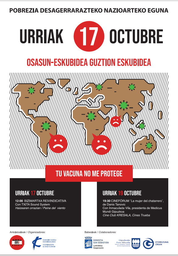 Urriaren 17a Pobreziaren eta Bazterketaren Aurkako Nazioarteko Eguna oroitzen da “Zure txertoak ez nau babesten: osasun-eskubidea denontzat”.