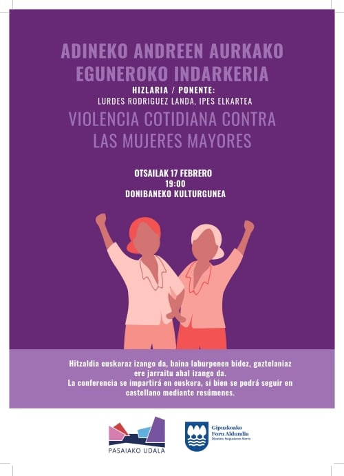 “Adineko andreen aurkako eguneroko indarkeria” izeneko hitzaldia eskainiko du Lurdes Rodriguez Landa Ipes elkarteko kideak otsailaren 17an, 19:00etan, Donibaneko Kulturgunean.