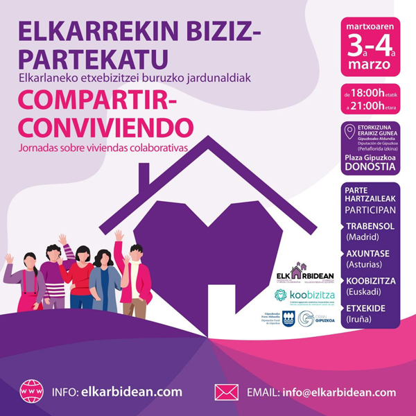 La asociación Elkarbidean organiza unas jornadas sobre vivienda colaborativa (cohousing) "Compartir-Conviviendo" en San Sebastián.