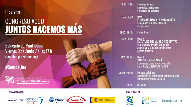 Esta semana, va a tener lugar el Congreso anual de ACCU, en concreto el día 3 de junio, se realizará el primer CONGRESO, que será accesible a todos los pacientes: tanto si se encuentran en el propio congreso, como los que estén en sus casas porque se retrasmitirá por streaming.