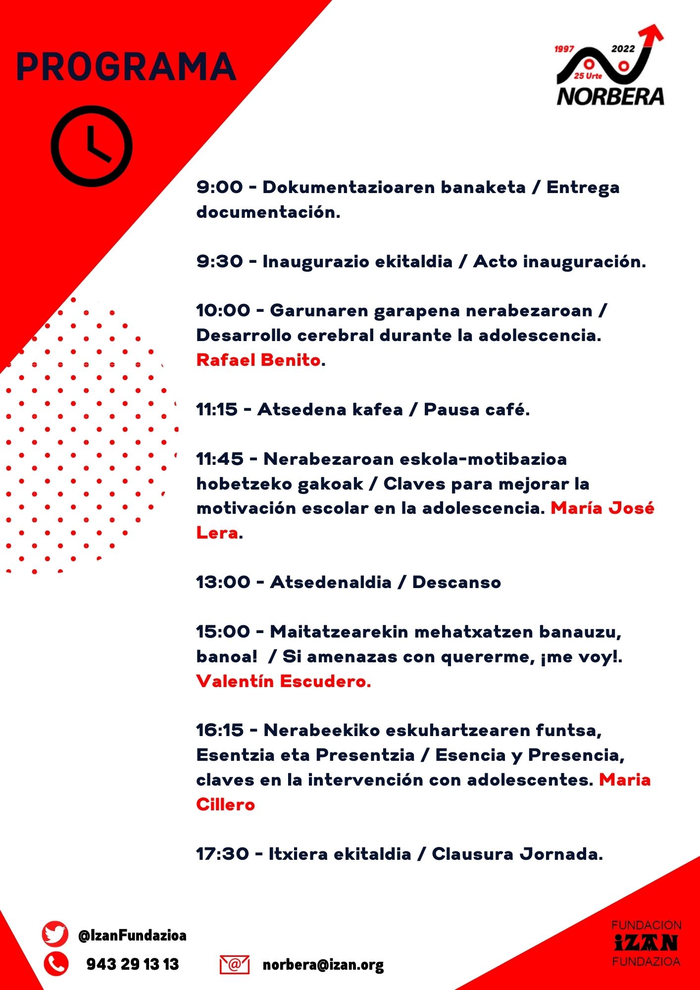 Jardunaldian zehar, nerabezaroan garunaren garapenarekin gertatzen denarekin, eskola-motibazioa hobetzeko moduarekin, nerabeen eta familiaren arteko aliantza terapeutikoarekin edo nerabeekin esku hartzeko gakoekin zerikusia duten gaiak jorratuko dira.