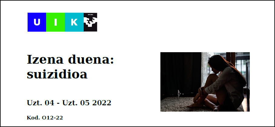 Euskal Herriko Unibertsitatearen Udako Ikastaroen barruan "Izena duena: suizidioa" jardunaldiak antolatu dira.