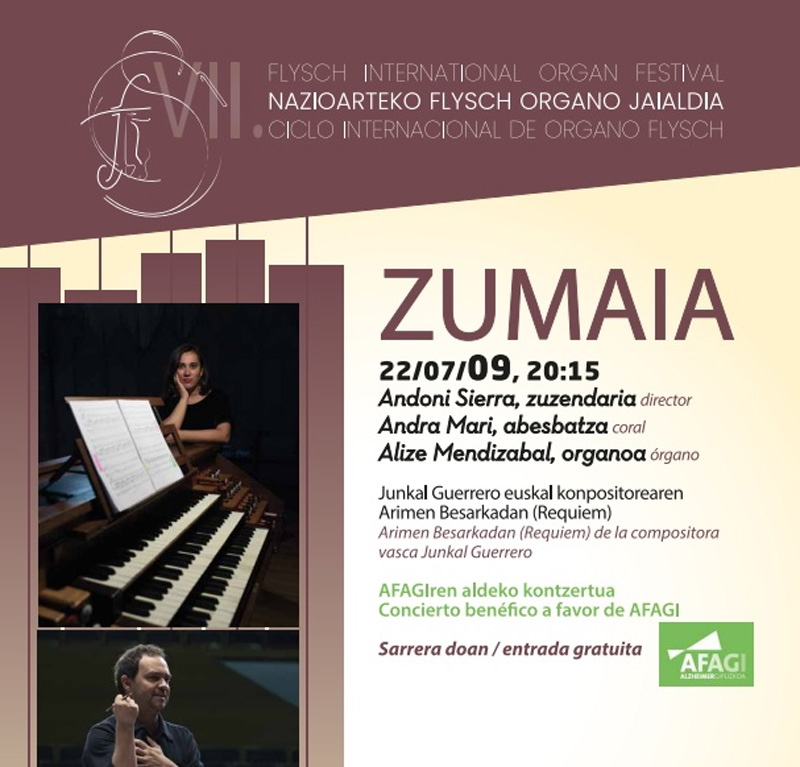 VII. Nazioarteko Flysch Organo jaialdiaren edizio berriaren egitarauaren barruan dago uztailaren 9an Zumaiako San Pedro parrokian 20:15ean ospatuko den AFAGIren aldeko kontzertu solidarioa.