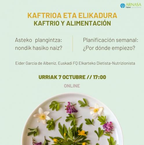 Arnasa Euskadik Eider García de Albénizek eskainiko duen “Kaftrioa eta elikadura” online hitzaldia antolatu du.