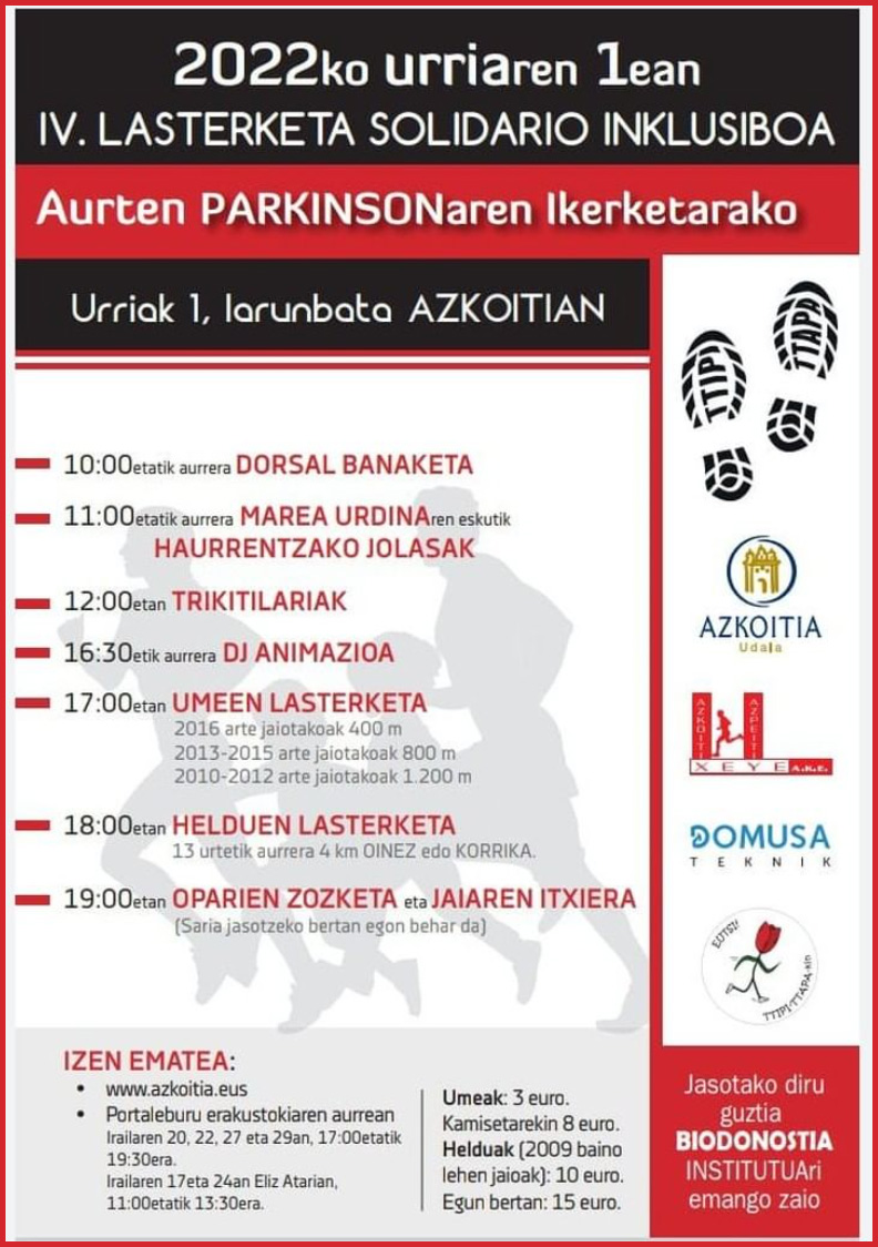 Ttipi TTapa elkarteak antolatuta, urriaren 1ean, IV. Lasterketa Solidario Inklusiboa egingo da. Aurten Parkinsonaren ikerketarako.