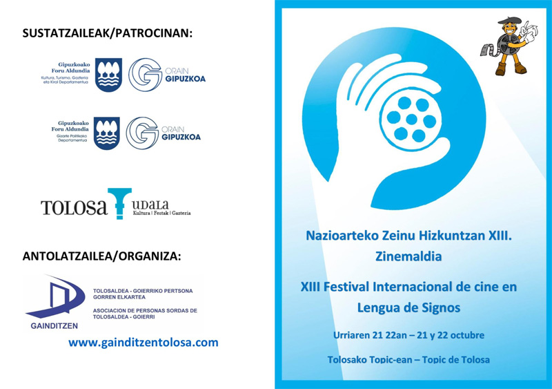 Gainditzen Elkarteak Tolosako Nazioarteko Zeinu Hizkuntzan XIII. Zinemaldia antolatzen du.