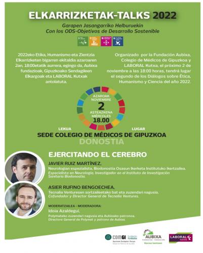 2022ko Etika, Humanismo eta Zientzia Elkarrizketen bigarren ekitaldia azaroaren 2an, 18:00etatik aurrera egingo da, Aubixa Fundazioak, Gipuzkoako Sendagileen Elkargoak eta Laboral Kutxak antolatuta.
