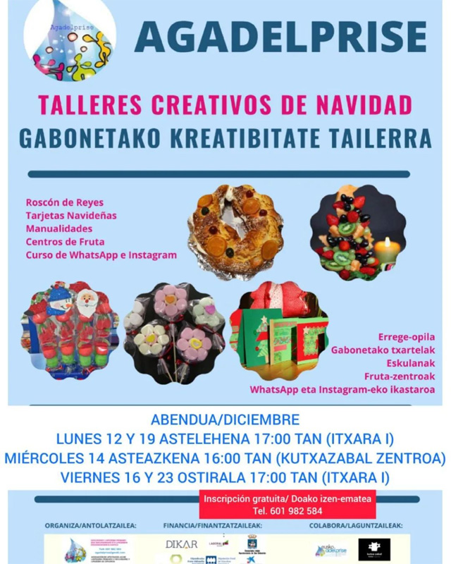 Agadelprise elkarteak abenduan egingo dituen gabonetako tailerrak.