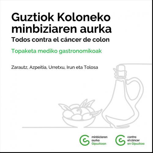 Con motivo del Día Mundial Contra el Cáncer de Colon (31 de marzo), la asociación Contra el Cáncer en Gipuzkoa ha organizado varios encuentros gastronómicos que tendrán lugar en diferentes municipios de la provincia.