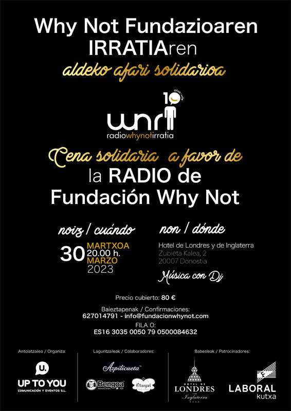 En Donostia se celebra la cena solidaria a favor de la Radio de Fundación Why Not.