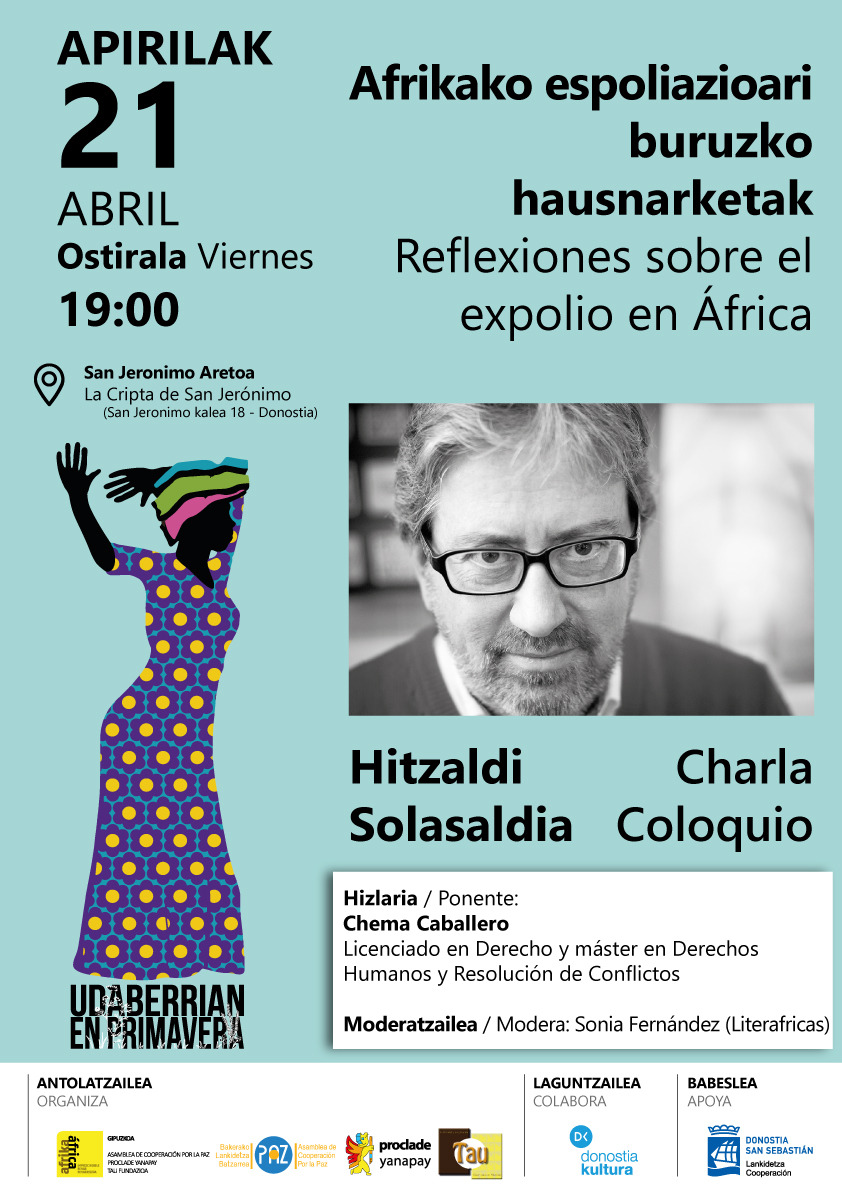 Gipuzkoako Afrika Behar Beharrezkoa elkarteak Chema Caballerok eskainiko duen "Afrikako espolioari buruzko hausnarketak" hitzaldia antolatu du.