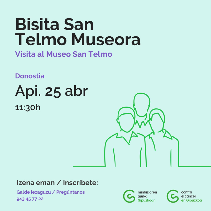 Minbiziaren Aurka Gipuzkoan elkarteak Donostiako San Telmo Museora bisita gidatua antolatu du.