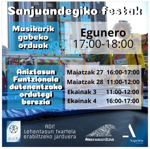El Ayuntamiento de Azpeitia nos ofrece varias opciones para que todas las personas podamos disfrutar de las fiestas de Sanjuandegi.