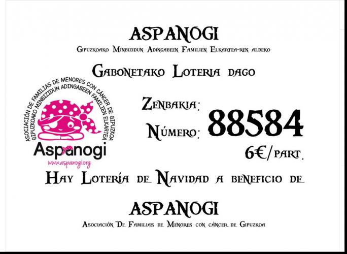 Aspanogi Elkarteak 2023ko Gabonetako loteria salgai du (Zenbakia: 88.584)
