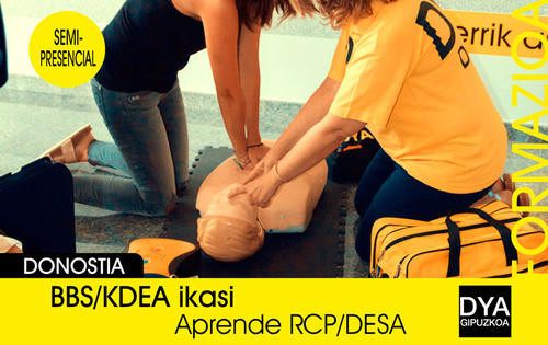 DYA Gipuzkoak Lehen SorospenenBihotz Biriken Suspertzea eta Kanpoko Desfibrilagailu Erdi-Automatikoaren erabileraren ikastaro erdipresentziala antolatu du Donostian duen egoitzan.