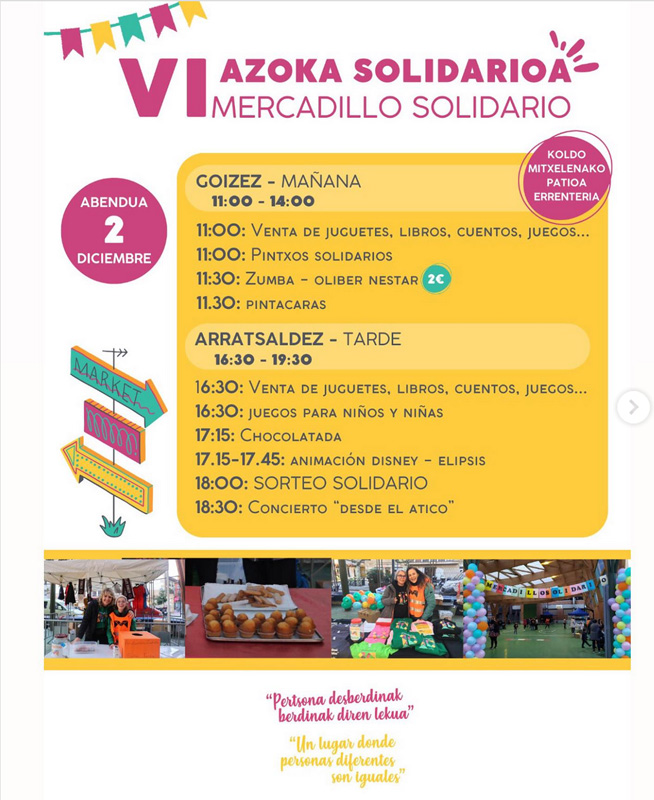 Mindara elkarteak, aniztasun funtzionala duten pertsonei arreta emateko Gipuzkoako elkarteak, abenduaren 2an, larunbata, Errenteriako Koldo Mitxelena ikastetxeko patioan VI. Azoka solidarioa antolatuko du.